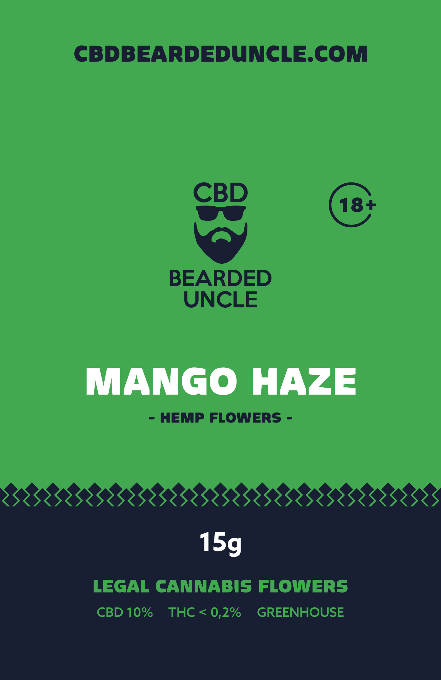 BEARDED UNCLE MANGO HAZE GREENHOUSE CBD 10% a THC 0,2% 20g
