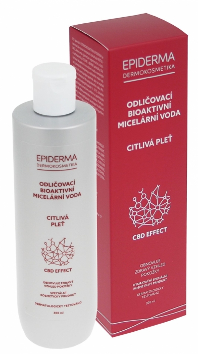 Epidermy bioaktívne CBD micelárna odličovacie voda účinne a šetrne pomáha vyčistiť citlivú či problematickú pleť od nečistôt a make-upu.