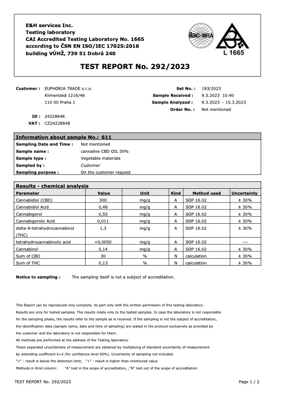 Full Spectrum CBD, supercritical CO2 Extraction, sourced from biological EÚ